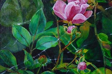 Obrazy malowane farbami akrylowymi.